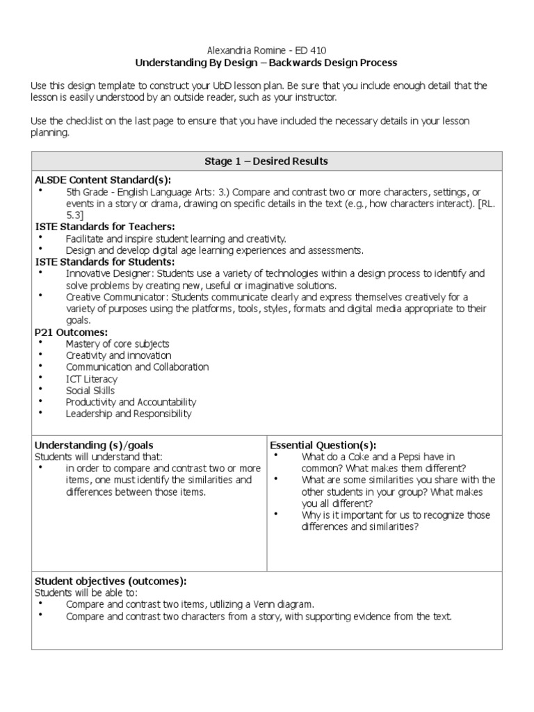 😍 Ubd lesson plan in english grade 7. Ubd template reading lesson plan ... (Elizabeth Daniel)