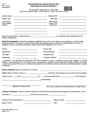 Fillable Online rol frs state fl Application for Service Retirement ...