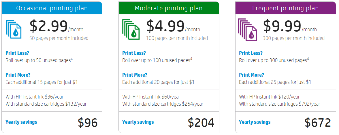 Is HP instant ink a good deal? In this plan too, you can print colored as well as black So, instead of buying that cartridge you can subscribe to the HP Instant Ink which would surely save you lot of money. Your HP WiFi printer will alert HP if the Choose one of the four print plans, because there is a print plan for every situation.