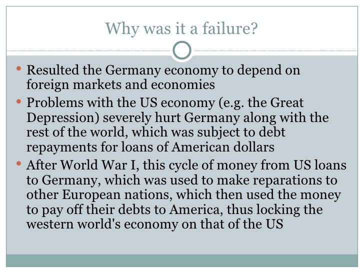 The Dawes Plan, named after American financier Charles G. This was done under the Foreign Secretary of Germany, Gustav. USA and Britain came up with the plan whereby USA will give loans to Germany to kick start economy, Germany then pays reparations to Britain and France with which Britain can.