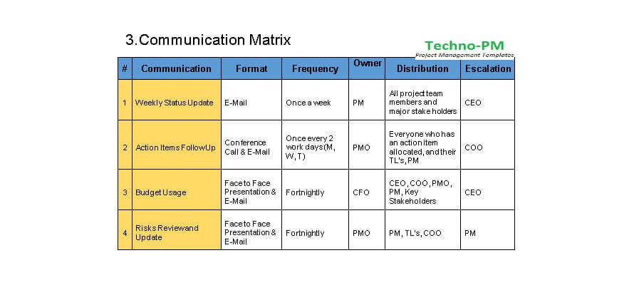 Project Management Communication Plan Template - Excelonist